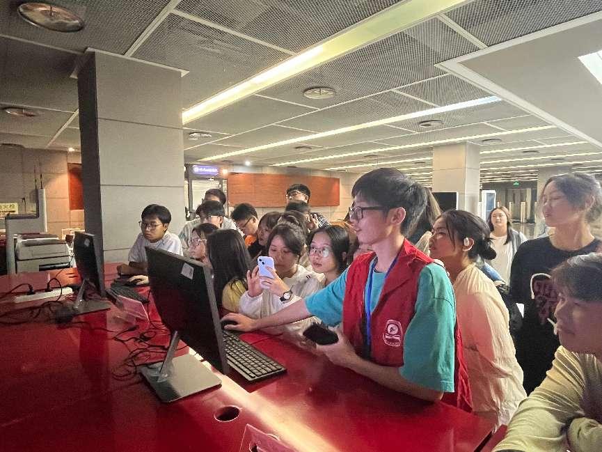 在图书资源介绍环节,工作人员详细讲解了图书馆涵盖的多学科、多领域的海量书籍、期刊杂志、电子数据库等资源,并重点演示了如何通过图书馆的检索系统快速准确地查找所需资料。面对丰富多样的资源,新生们不时提出问题,工作人员一一耐心解答,现场互动气氛热烈。