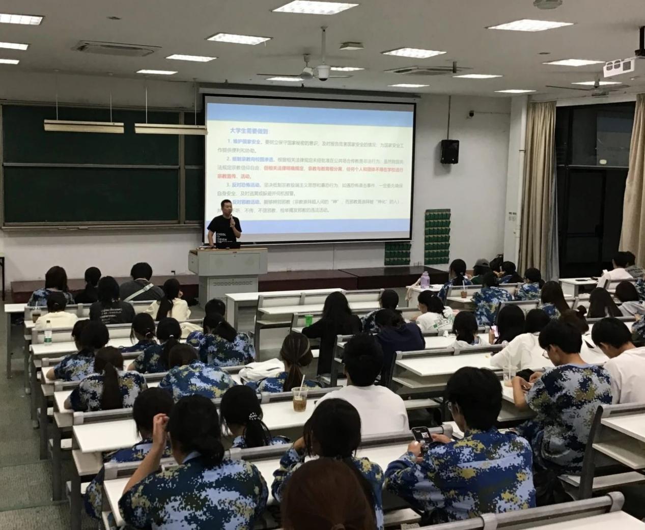在国家安全方面,重点强调了维护国家安全是每个公民的责任和义务。吴老师通过讲述国家安全的重要性以及面临的威胁和挑战,引导新生们树立正确的国家安全观念,自觉遵守国家法律法规,积极参与到维护国家安全的行动中来。