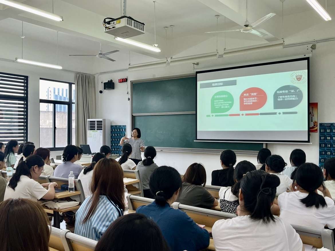 校园新闻网讯 随着今年第13号台风“贝碧嘉”的临近,为确保师生安全并维持正常教学秩序,公司原定于9月15日开始的2024级新生军训活动不得不做出调整。3044永利积极响应公司统一部署,迅速启动了“停训不停课”的应急教学计划。在公司教务与学工的紧密联动下,3044永利四大教研室——英语、商务英语、日语、德语教研室迅速行动,全体教师共同努力,特别为新生们准备了专业导论课,作为这两天军训期间的替代教学内容。此举不仅填补了军训暂停后的教学空白,更为新生们提供了一个深入了解各自专业、激发学习兴趣的宝贵机会。尤为值得一提的是,四大教研室主任率先上阵,担任各自专业导论课的第一讲教师,为新生们打开一扇通往专业知识殿堂的大门。