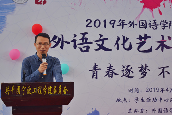 首先,员工会主席杨洋学姐和副主席汪婷学姐对艺术节和阅读工程项目进行介绍以及成果汇报。之后,胡朋志经理为本届外语节致辞,他提出“青春就是要勇于追逐梦想,希望我们能在最美好的年华充满活力,青春无限”。随后,姜维副书记宣布外语节开幕。