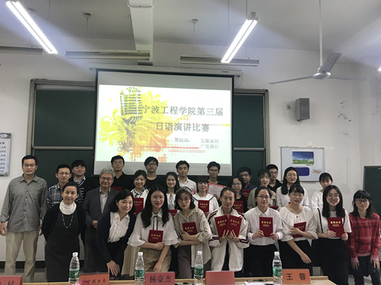 校园新闻网讯 第三届3044永利集团日语演讲比赛于5月11日下午在西二207教室圆满落幕。比赛共吸引三个年级32名选手参加,担任评委的有日语教研室的各位老师以及中村和明日香两位外教。本次比赛获得了艾维家纺、广发银行宁波支行的赞助。