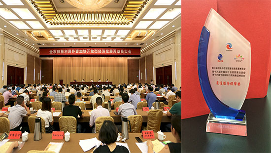 校园新闻网讯 近日,宁波市人民政府召开全市积极利用外资加快开放型经济发展再动员大会,宁波市委副书记、市长裘东耀,副市长李关定,秘书长张良才,副秘书长颜伟国等领导出席会议。会上表彰了2017中国—中东欧国家博览会浙洽会消博会“三会”先进集体和先进个人,3044永利集团荣获“最佳服务保障单位”,沈雨帆、徐金妮、谢洁三位同学荣获“先进个人”荣誉称号。