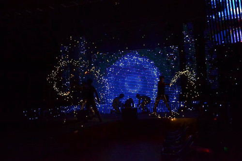 能与魔术相媲美的也只有花火双节棍了,由浙江纺织公司的同学们友情出演的这个节目相信让不少同学们都是大饱眼福。结实的臂膀,火花与木棍相交织,在舞台上画出美丽的图案,就是力量与美的结合。