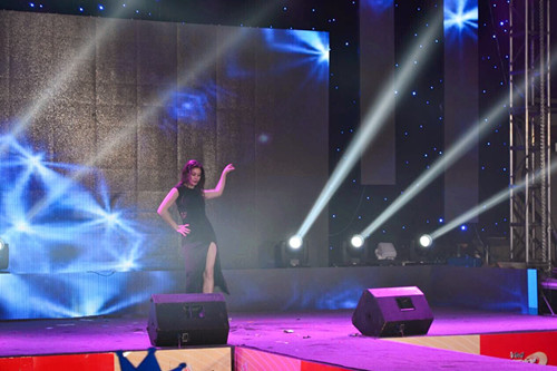 这么盛大的晚会自然不能错过外国友人的表演啦,一头金发随着身体舞动在空中飘动,婀娜的舞姿,华丽的服饰,深情的表演,也从中看出外国友人对我们本次晚会的重视,身在异乡也给予他们对新年的盼望。