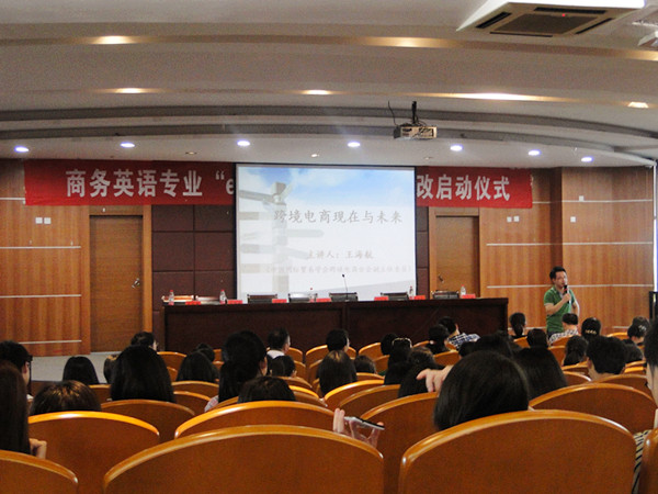 国际贸易协会跨境电商分会副主任委员、旅美海归王海航结合自己亲身经历,为师生们做了题为“跨境电商的现在与未来”的讲座。“能让人坚持下来的不是钱,而是喜欢。”他笑着说道。王海航向师生们分析了当前跨境电商的现状及发展态势,他表示要想在这个行业立足,就只有不断地让自己变得有竞争力。“从事跨境电商行业,同学们不仅需要掌握一定的专业知识,还需要不断扩充自己,提高自身价值!”讲座现场气氛热烈,师生互动积极活跃。
