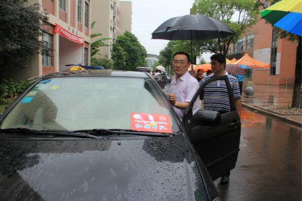 自15日发布红烛车队消息后,同学们纷纷请过电话、短信、微信等方式预约,截止今天共有近百名同学预约。当天下午在在5号外语楼出口处,只见一字排开停着二三十辆车子,老师们正忙活着将员工的行李搬上车子后备箱,将员工送至汽车站、火车站等地。“还有没有去火车站的同学,这里还能坐一个。”只见姚剑鹏经理一手撑伞,一手帮忙毕业生开门装行李,招呼着员工上车。“里面还有东西吗?我帮你一起拿。”刘坚老师接过员工手中的行李连忙问道。有些老师、同学得知今天公司教职工爱心车队欢送毕业生离校,也主动到现场组成志愿者服务队来帮忙,有的帮忙打伞,有得帮忙搬运行李。“有些外省员工回家路比较远,火车发车时间早,怕他们误了车。”有些老师当天上午九点多就开车来欢送员工。陶磊、张晴华等一行驾车将毕业生送到汽车站,金晓东、徐宁等驾车一行将员工送到火车站。在火车站毕业生章晓骁下车时满怀深情的说,“我们外院的老师太有爱了,在离开的日子还能享受到老师浓浓的细节关爱,真的非常感动!”