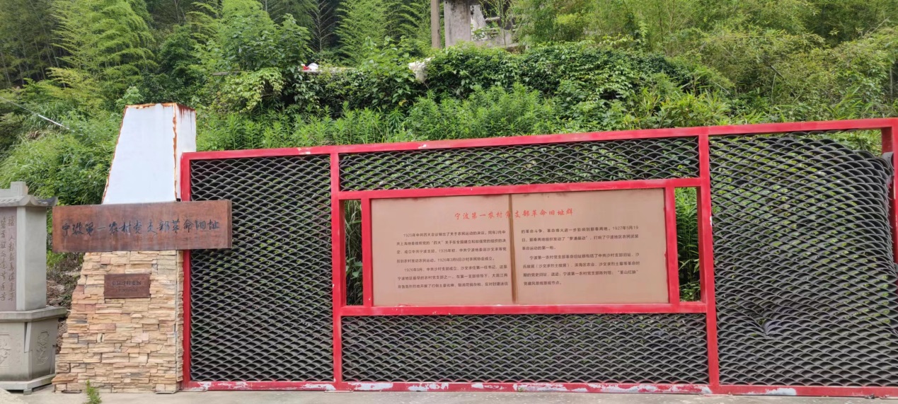 宁波第一农村党支部革命旧址位于鄞州区塘溪镇沙村,包含宁波第一农村支部(农会)陈列馆与沙氏故居。沙村农会是宁波地区的第一个农会之一,中共沙村支部是宁波地区最早的农村党支部之一。宁波第一农村支部(农会)陈列馆就在堇山红脉的起点沙村,坐落于沙氏故居旁,占地面积约280平方,由陈列主体楼和宣誓广场两部分组成,内设第一支部、不忘初心、沙村农会、从严治党、牢记使命五个主题展馆。