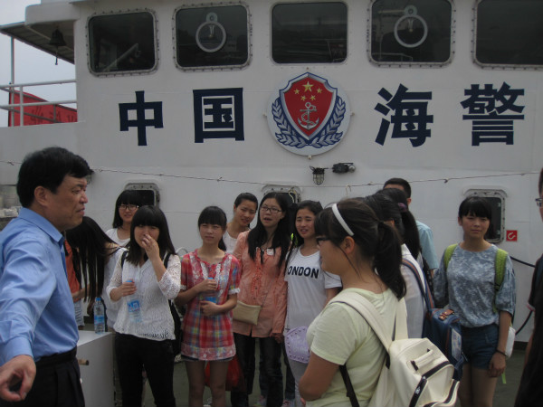 党课上,四支队张副政委做了关于海洋知识及权益保护的报告,他勉励同学们学好知识,爱党爱国,欢迎同学们投身中国海洋事业。随后,同学们参观海监船只,观看中国海监维权纪实影像,零距离感受海监人的工作和生活,特别是执法维权中一个个惊心动魄的故事也深深地感染了同学们,激发了同学们的爱国情感。
