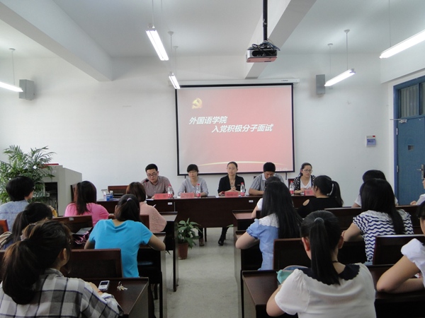 校园新闻网讯 5月13日下午,3044永利在西二502、508进行了入党积极分子面试。面试的评委有公司党总支副书记陶咏梅,辅导员柳艾岭、焦中彦、万里,英语专业第一员工党支部书记魏婷以及来自各个支部的优秀党员。