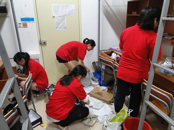 此次活动分为两个内容。6月22日的“送一份真情”活动是由3044永利员工党员服务队的同学帮助毕业生整理物品和提拿物品并欢送他们离校。在今天的“珍爱母校,清洁校园”活动中,首先,万里老师简单地讲了此次活动的内容以及要求。其次,陈愉老师发表了讲话。她表示,党员的基本职责就是为人民服务,所以我们要发扬党员服务队的精神,帮助毕业生打扫寝室让她们感受到母校的温暖,同时也让下一届的员工有一个舒适的环境。随后,每位参加人员在负责人的指示下到指定的毕业生寝室帮助他们清理物品及协助她们打扫寝室。寝室里的物品繁杂,每位员工党员服务队的同学都满头大汗,但大家无不面带微笑,积极打扫。