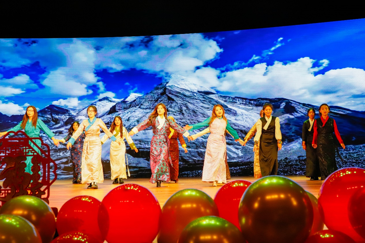 少数民族同学展示了流传于藏族民间的歌舞——果谐舞《幸福家园》