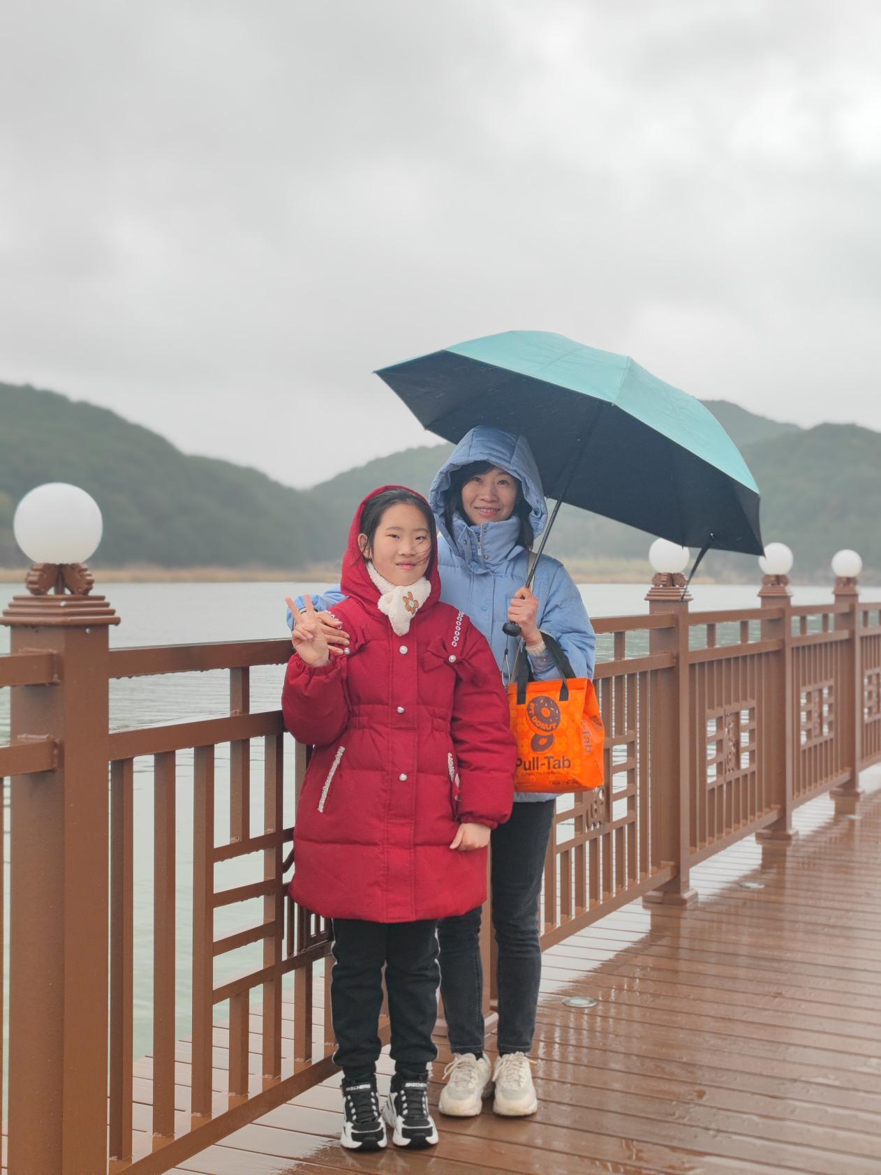 清晨,教师们携家人陆续抵达集合地点,大家的热情并未因阴雨天而削减半分。乘车前往天妃湖的途中,欢声笑语不断,对此次春游的期待在车厢内弥漫开来。抵达天妃湖后,一幅烟雨朦胧的江南春日画卷在众人眼前徐徐展开。湖面在微风细雨的轻抚下泛起层层涟漪,四周青山环绕,云雾缭绕,宛如仙境。教师们纷纷拿起相机,记录下这诗意的瞬间,孩子们则在一旁兴奋地奔跑嬉戏,笑声回荡在湖畔。