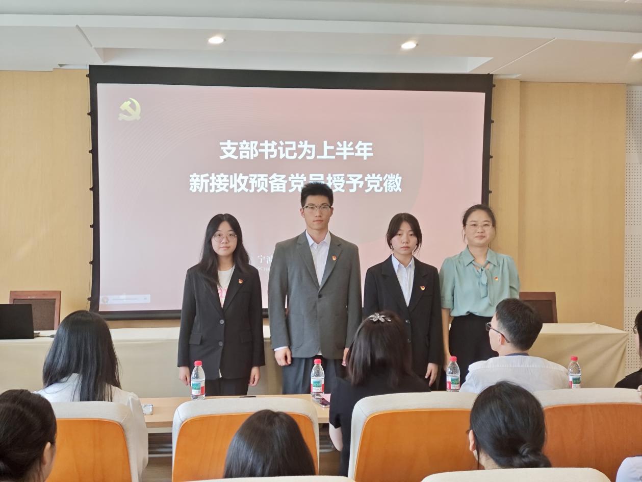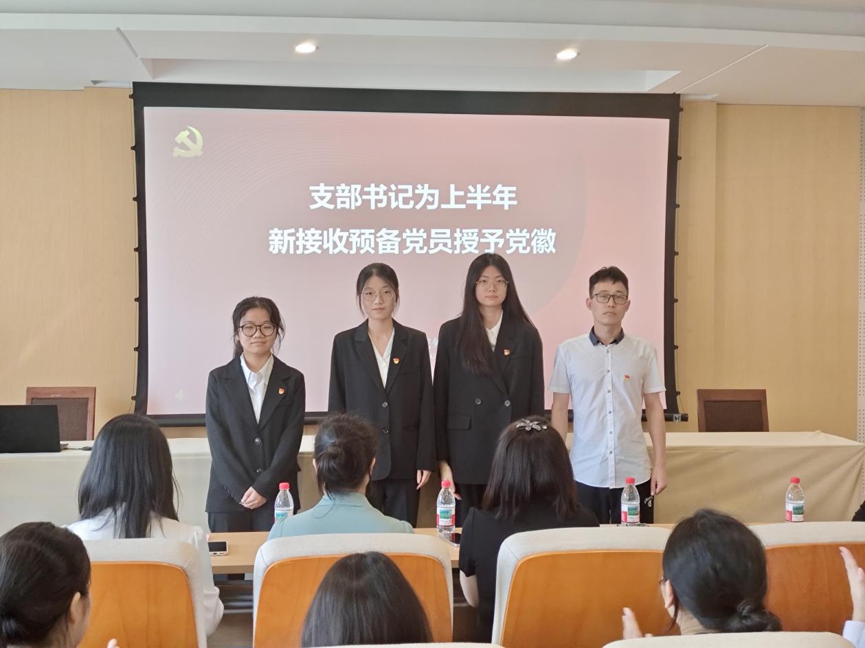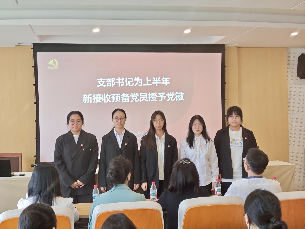 各支部书记为上半年新接收的预备党员佩戴党员徽章,这一枚枚党徽不仅是党员身份的象征,更是一份沉甸甸的责任。紧接着,全员依次上台抽取“我为同学做实事”任务卡片并宣读内容,将理论学习与实践行动相结合,以实际行动践行党的宗旨,展现党员的先锋模范作用。