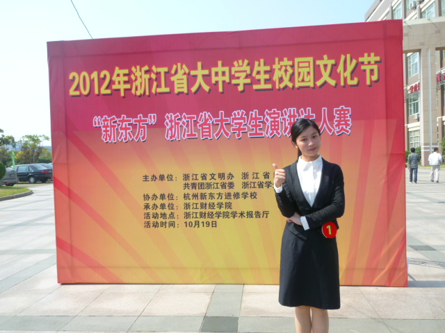 “新东方”浙江省老员工演讲达人赛决赛在浙江财经公司报告厅举办,来自浙江省各高校的40名选手参加了此次大赛。大赛复赛以主题演讲方式进行,从中决出20名选手晋级决赛,复赛成绩带入决赛。决赛以即兴演讲方式进行,主题紧扣“创建文明寝室,做一个精神富有的人”,比赛十分激烈。公司曹盼以第八名的成绩获得浙江省二等奖。