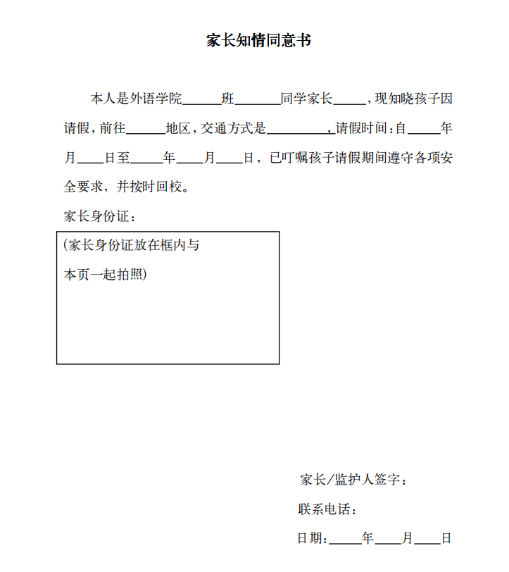 附件一:家长同意书