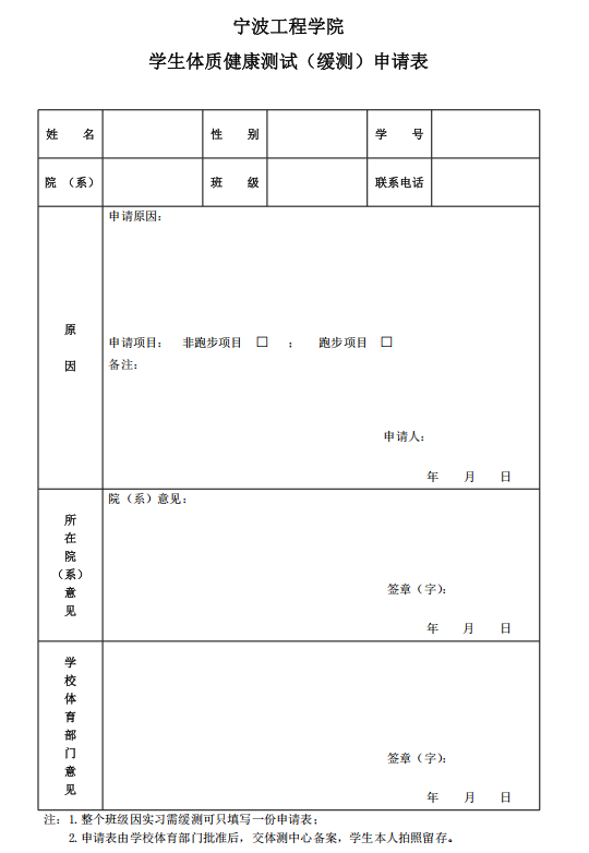 3044永利集团员工体质健康测试(缓测)申请表