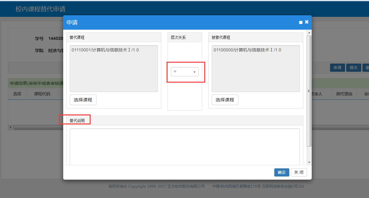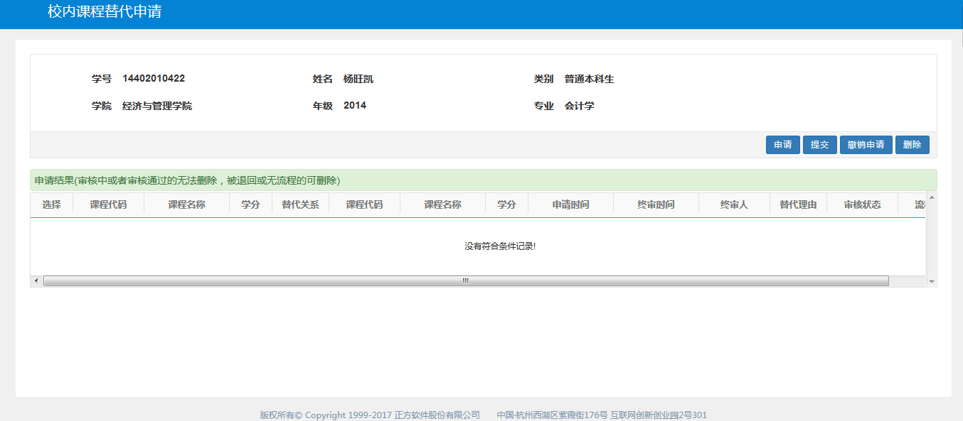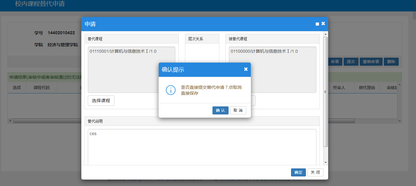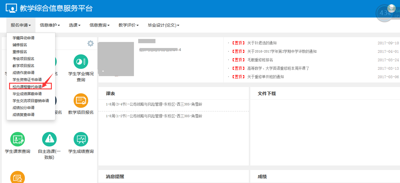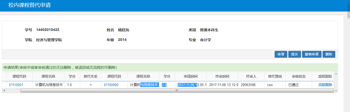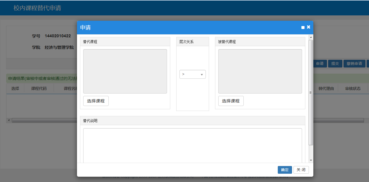 菜单路径:报名申请->校内课程替代申请