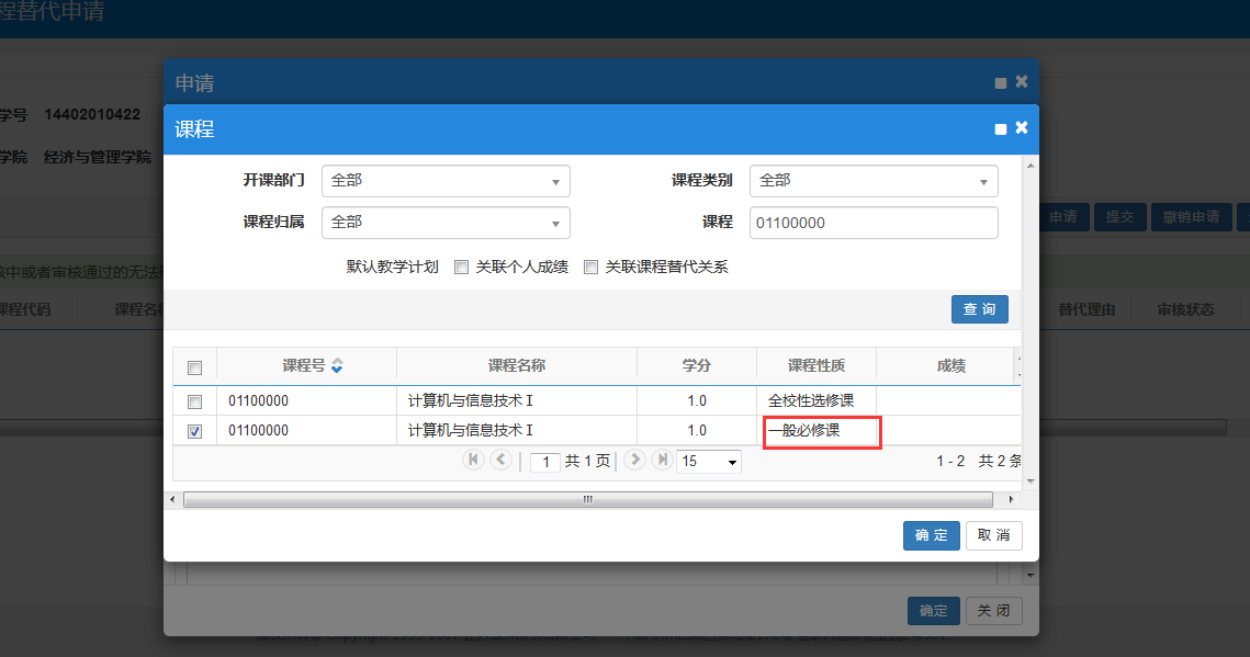 步骤二:课程替代申请