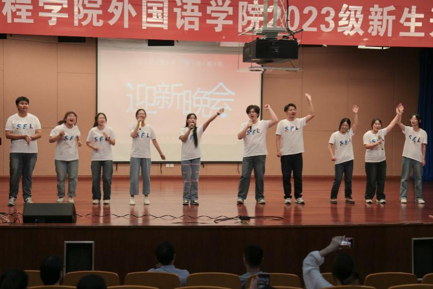 “而我将爱你所爱的人间,愿你所愿的笑颜……”MT Club一首《如愿》引来跟唱,将现场的气氛调动了起来。New Battle街舞社更是以一曲《GALA》点燃全场。23级英语专升本杨泽钧演唱的歌曲《一路之下》以其独特旋律鼓励同同学们在烦闷的生活里向阳而生。23级10名新生带来的《我的未来式》《It’s always a good time》歌曲串烧再次点燃全场,现场观众情绪高涨,开学典礼也在充满青春活力的旋律中圆满结束。