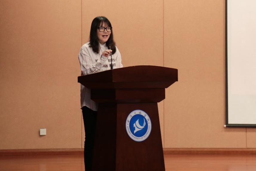 公司经理卢飒向新生介绍了公司的各专业情况、基础设施、团队力量等。通过讲述ChatGPT走入大众视野对于外语专业的影响,她向同学们更好地诠释了选择外语专业实则是选择了另一种新的思维方式,并以此拓展我们思维的广度与深度。