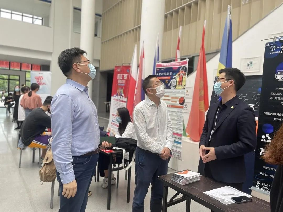戴董事长、王书记在招聘会现场与公司特邀参会的宁波凯越集团有限公司、宁波美博进出口有限公司、深圳普罗空运有限公司宁波分公司等重点用人单位代表进行深入交流,详细了解毕业生求职情况,希望校企双方在人才输送、实习实践等多层次、多领域开展深度合作。