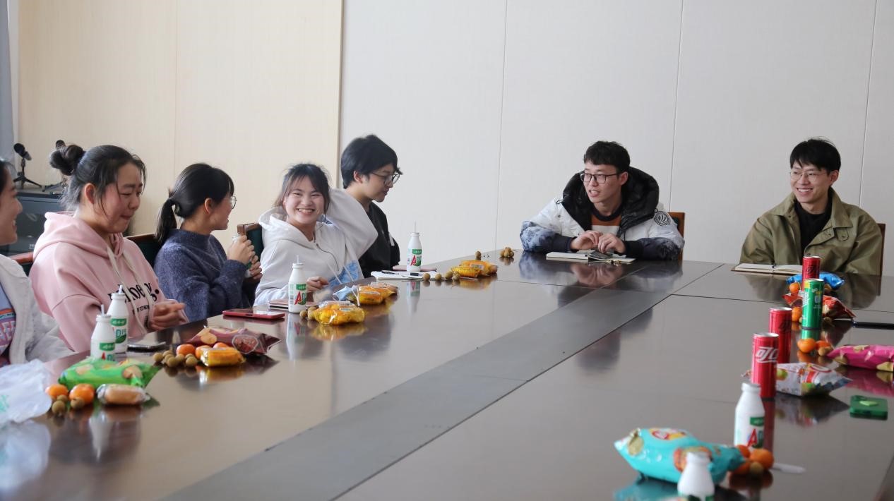 老师关心同学们是否有诸如语言学习、生活习惯方面的困难,热心关切回族同学在饮食方面是否有不便之处。了解到同学们对老员工活适应良好,他们表示少数民族同学是公司大家庭的重要组成部分,任何问题都可以主动向老师或学长学姐提出;同时寄语同学们,大学是个更大的舞台,要积极表现自己,敢于向周围同学展示自己民族的特色文化;早些做好学习规划,为未来的考研或是就业做好准备。老师幽默的谈话,让大家少了些拘束,多了份愉悦,气氛逐渐变得轻快活跃。
