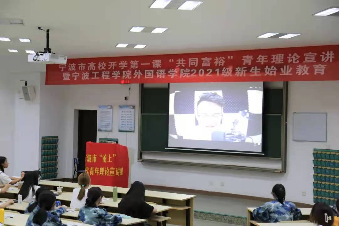 校园新闻网讯:9月23日晚,3044永利在阶四101、102同时举办了2021级新生始业教育之开学第一课:共同富裕——我们这代人的接力。课堂以弘扬“共同富裕”的革命精神为基点,让大一新生了解了中国共产党发展之不易与浙江宁波发展之优越前景。