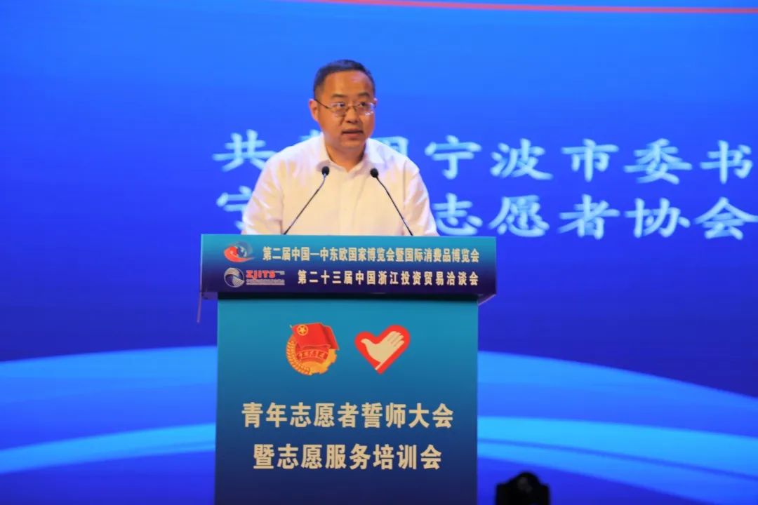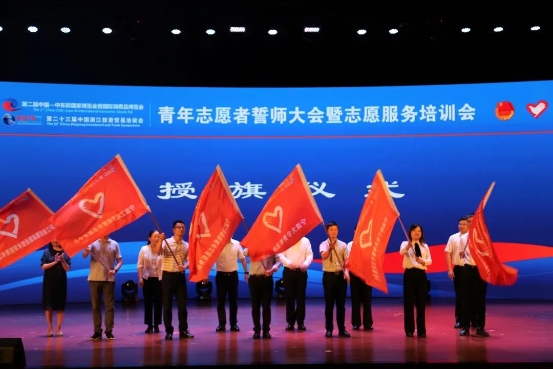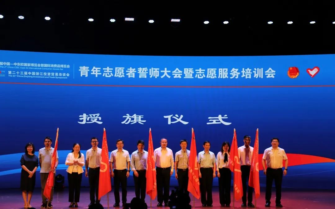 授旗仪式后,金昕书记对本次志愿服务作动员讲话。他表示,志愿的青春最有爱,奋斗的青春最美丽。这次的中国-中东欧博览会是宁波志愿者再次展现主人翁姿态、加快建设宁波为现代化滨海大都市的难得契机。他希望志愿者们以办好博览会,建好示范区为引领,在奉献中坚守初心,在岗位上不负使命,为办好中国-中东欧博览会做出应有的青春贡献!