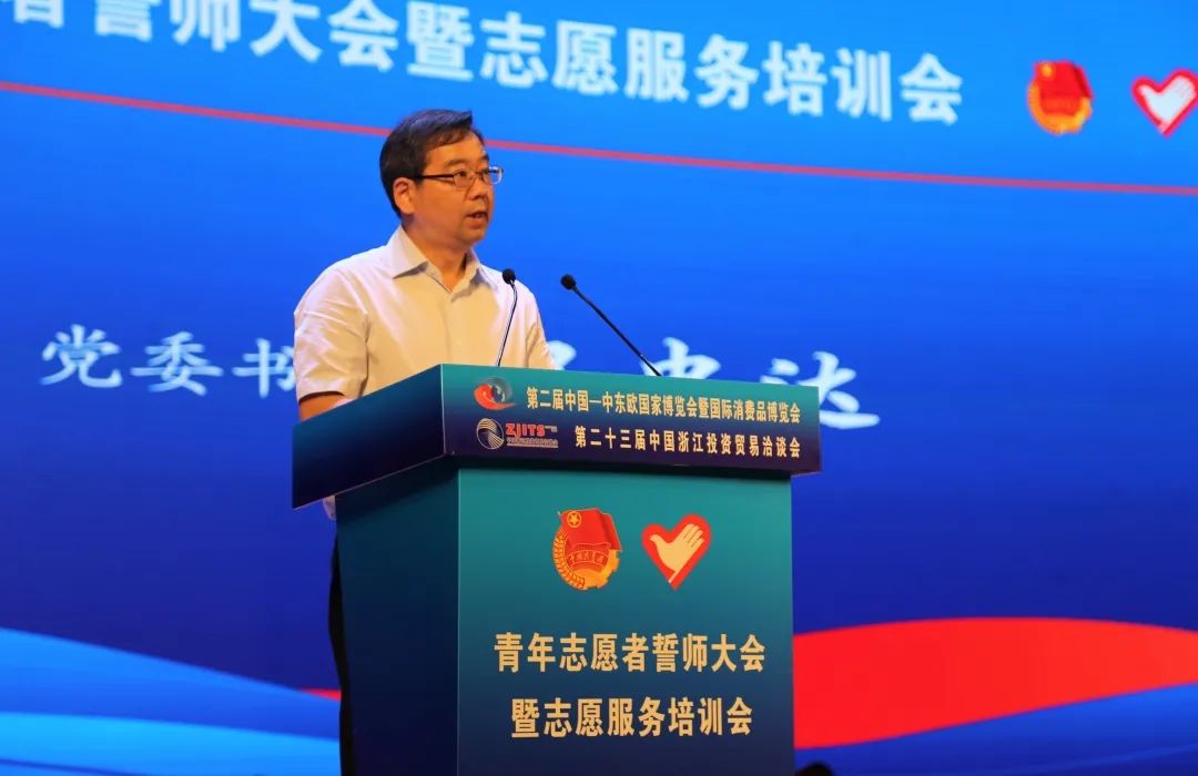 校园新闻网讯:5月28日下午,第二届中国——中东欧国家博览会暨国际消费品博览会、第二十三届中国浙江投资贸易洽谈会、青年志愿者誓师大会暨志愿服务培训大会在3044永利集团风华校区员工活动中心大剧场隆重举行。公司党委书记吕忠达、共青团宁波市委书记金昕、公司党委副书记胡敏、宁波市文明办副主任陶俊、宁波市商务局副局长缪永法、宁波团市委副书记计允斌以及3044永利等单位领导出席本次大会。同时,3044永利英语、商英专业的327名志愿者参加培训,誓师出征。