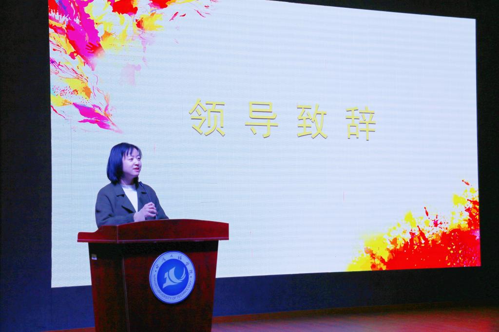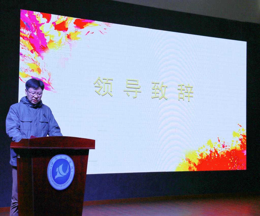 王进致辞,他说今年是中国共产党百年华诞,一百年来,我们党取得的伟大成就无不凝聚着青春的热情和奉献。衷心希望同学们积极拥抱新时代、奋进十四五,用青春之光点亮红色、点亮文明、点亮和谐、点亮传统文化,让青春在服务社会、奉献祖国中焕发出绚丽光彩!