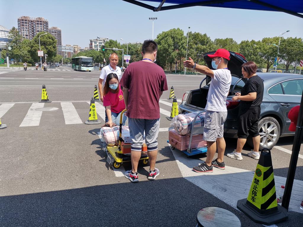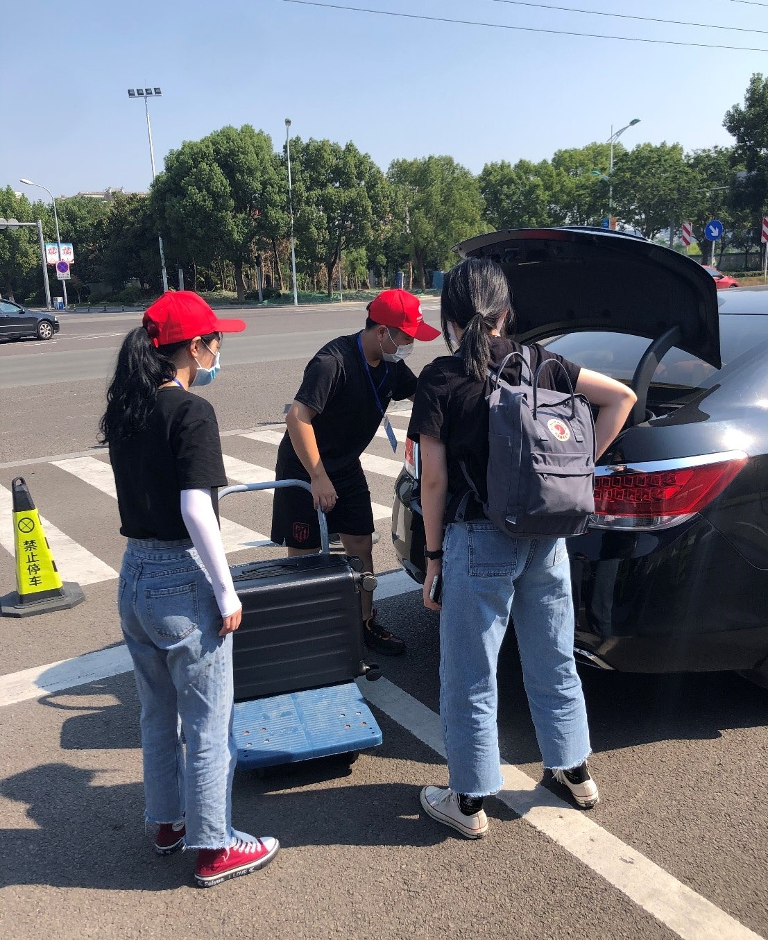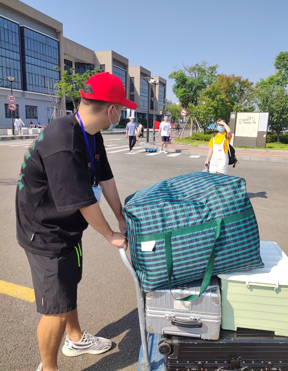 同学们在摆渡车的接驳下进入校园到达宿舍楼后,公司志愿者们在楼下等待帮助同学们搬运行李,用实际行动服务同学返校。
