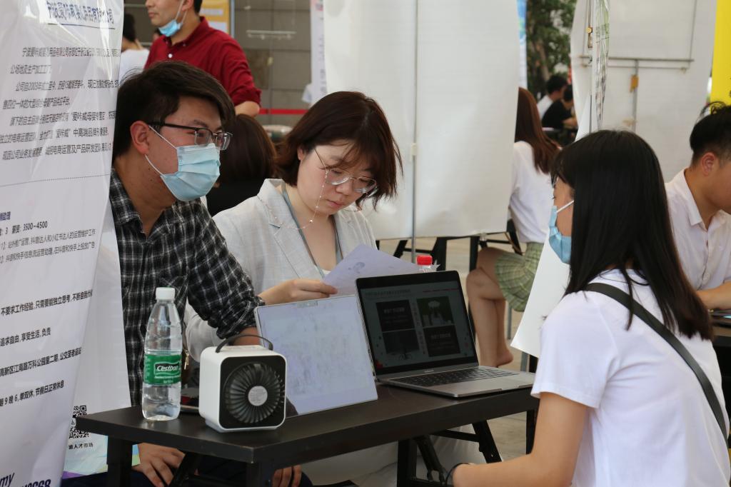 校园新闻网讯:6月24日下午,公司承办的外语外贸、人文管理类专场招聘会在风华广场顺利举行。本届招聘会吸引了74家宁波本土企业参展,提供了800多个岗位,涵盖了文案翻译、外贸员、销售经理等职位,众多毕业生和在校员工慕名而来。