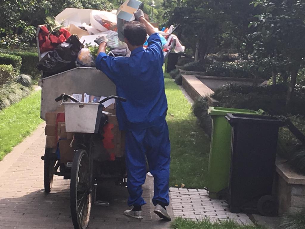 很遗憾,他拒绝了我们的采访,他说:他并不清楚什么垃圾分类,他只是承包了这个小区的垃圾回收而已。每天下午来收一次。不过我们观察了他收垃圾的方式,很明显的是,他只在收垃圾,那些垃圾的种类他并不管,装上车就行。问题很明显:就算居民们有做垃圾分类,如果环卫工人把不同的垃圾都塞在一起,那么垃圾分类还是没能实现。还会让居民们的心血白费,打击他们的积极心。