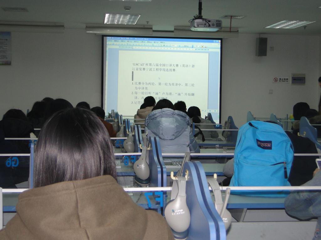 校园新闻网讯 3月21日晚6点, “‘LSCAT’杯第六届全国口译大赛(英语)浙江省复赛3044永利集团选拔赛”于西四306顺利举行。作为口译爱好者展现交流平台的口译大赛,不仅要求选手掌握口译的基本技能,了解文化背景知识和近一年来的重大国际国内事件,也要求参赛者具备较强的信息提取、整合及语言组织能力。