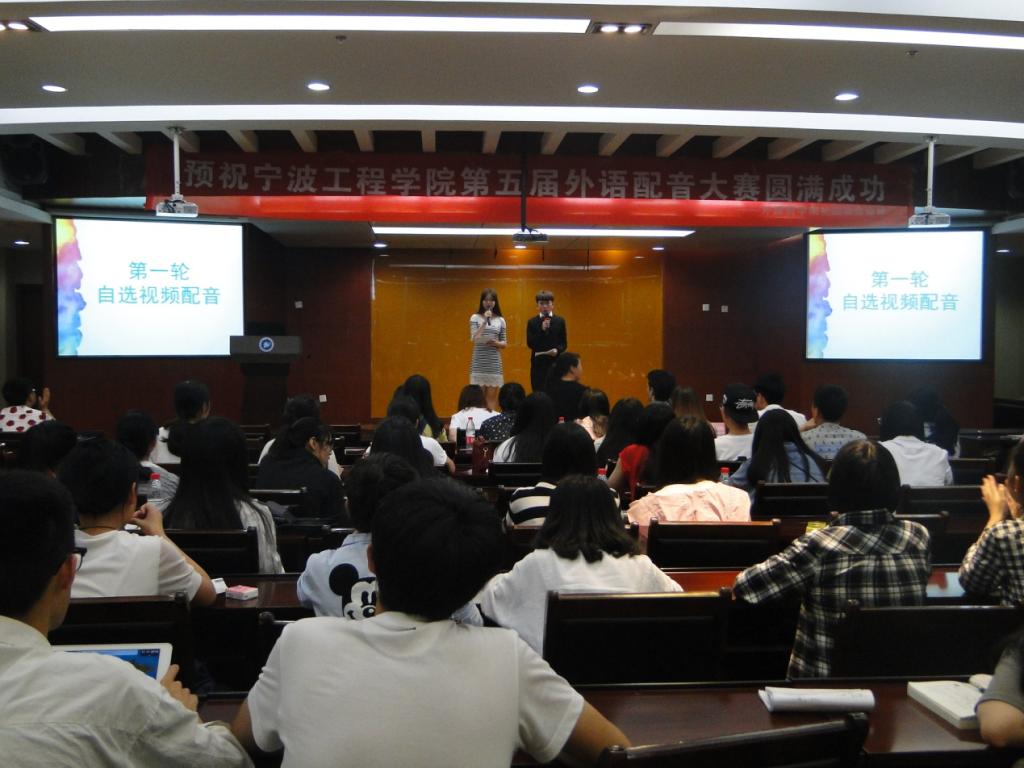 比赛分为两轮,第一轮为自选视频配音,第二轮为指定视频配音,十二组选手只有前五名才能进入第二轮!选手们每个人都表演得十分生动有趣,把自己的才能发挥得淋漓尽致,赢得了阵阵掌声。比赛是紧张的、激烈的,也是残酷的!我们优中选优,决出了前五名继续比赛!