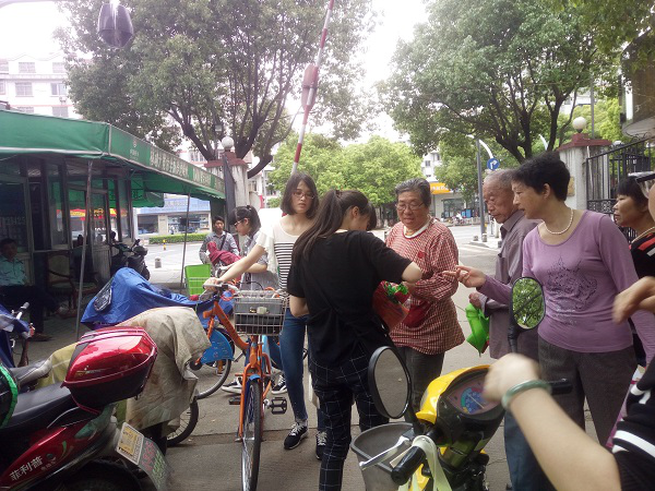 今日天气凉爽、微风阵阵,正是一个适合骑行宣传的日子。此次活动的主题是垃圾分类,共有九位志愿者参加,他们骑着自行车到小区里为环保做宣传,给小区的爷爷奶奶及行人分发相应的小礼品。每位志愿者都身穿绿色背心,在社区形成了一道靓丽的风景线。她们脸上洋溢的笑容给这个春天增添了朝气。