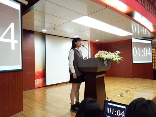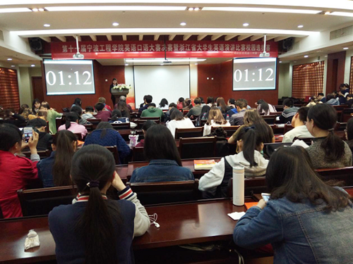 经过初赛和复赛的角逐,共有十二位选手进入本次决赛。本次活动主要分为三个环节。第一轮为“定题演讲”,选手随机抽取题目进行为时三分钟的演讲。第二轮为“外教提问”。第三轮,选手回答外国文化知识题目。在这场比赛中,第一轮比的是选手们的口语能力和对时间的分配能力。第二轮的比赛,更考验选手的综合实力,而第三轮考的则是选手们对外国文化的了解程度。当抽到各自演讲的题目时,全场鸦雀无声,选手们都在认真地整理思路并且组织自己的表达,而观众们更是期待的全程关注各位选手的表现。