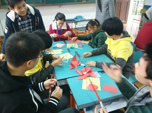 在活动的过程当中,志愿者们教孩子们折千纸鹤,折飞机,其中一个孩子拿着自己折好的飞机,迫不及待想要试飞,他希望自己的梦想如同飞机一样可以自由飞翔!
