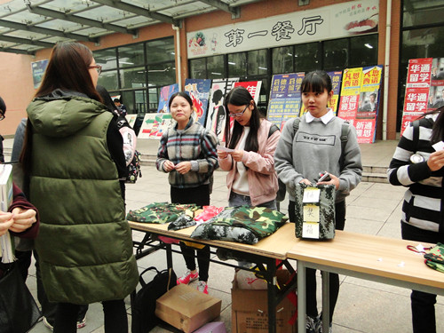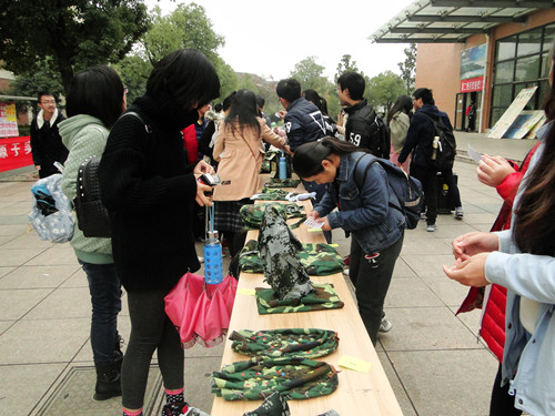校园新闻网讯 11月30日中午,由青志部主办的“与军训服再度邂逅”活动在大食堂门口成功举行。这次活动属于寝室文化节系列活动。各个参赛者的作品在长桌上展出,并由广大同学现场进行投票。