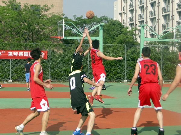炽热的阳光也抵挡不住同学们对篮球的热情,下午3点半的塑胶篮球场,穿着各色队服的参赛同学早已热好身,蓄势待发,每个人都摩拳擦掌跃跃欲试。两个场地两场比赛同时进行,由英语131、132组成的队伍对战商英143、144组成的队伍;商英141、142组成的队伍对战英语125、126的队伍。在激烈的比赛开始之前,由公司的健美操协会带来了一段加油操,使比赛还未开始便已到达一个新的热度。
