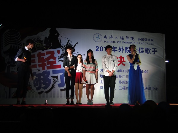 料峭的秋风带给同学们一丝丝凉意,但是现场的选手及观众们的情绪仍然十分高涨。选手们唱出的美丽音符谱写出了深秋最美丽的赞歌。比赛共分为三轮,首先由5组男女组合对唱,从声情并茂的对唱中可以看出选手们努力的成果。最终三位选手分别是夏腾,仇健,邵奕清直接晋级第三轮。而其余七位则进入第二轮擂台赛,胜者只有一位,盛阳茜一曲《蝴蝶泉边》如细雨润物成为擂主。
