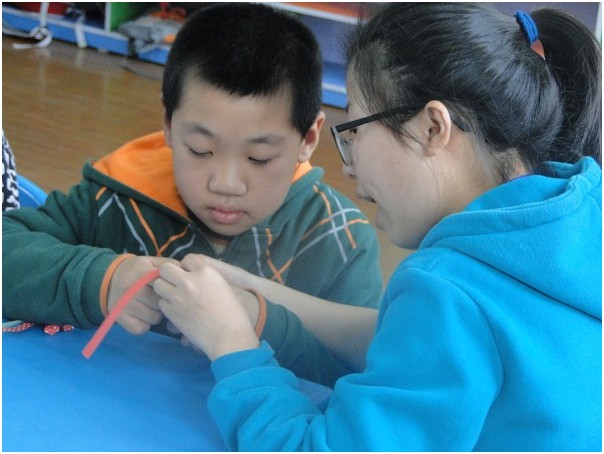 志愿者刚一抵达该校,就受到了员工们的热情欢迎。在负责此次活动的老师嘱咐好一些事项之后,志愿者们就开始前往几个班级,弹唱儿歌、吹口琴、教员工折纸,最后是集体的大合唱,志愿者们无一不与员工们相处的很融洽。在活动结尾的时候,大家都依依不舍,甚至有员工眼含热泪,舍不得志愿者离开。