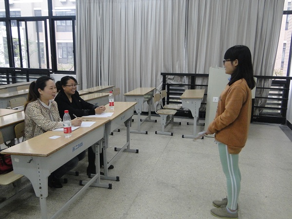 此次比赛分为专业和非专业两组,并且各分配两名评委。预赛内容由自我介绍和随机抽取小短文朗读两部分组成,评委老师将分别在语音语调、熟练程度、综合表现力等方面进行评分。自第一位选手上台开始,选手们便不遗余力地表现出了自己的口语实力,尤其是专业组的选手们尤为突出,非专业组的选手们也毫不示弱。一场预赛就因大家的热情而进行的如火如荼。