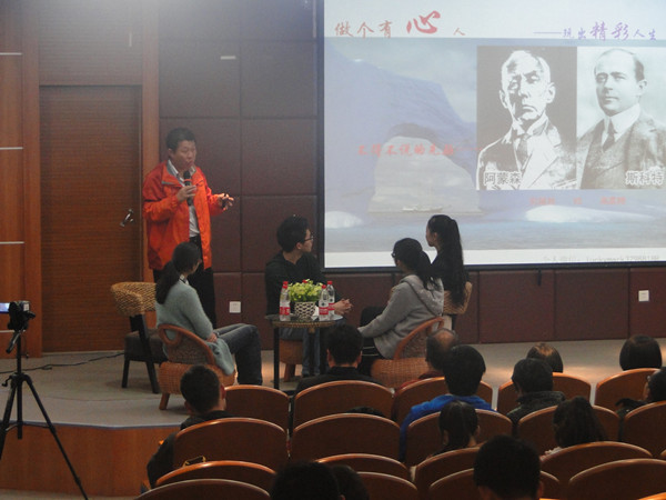 历经两个半小时的讲座在热烈的掌声中谢幕。整场讲座采用访谈的形式,让同学们倍感亲切温馨,现场互动活跃,气氛热烈。通过交流,同学们感受到南极探险的惊险和精彩,同时也引发了大家对如何更好地看待当下和未来的思考。