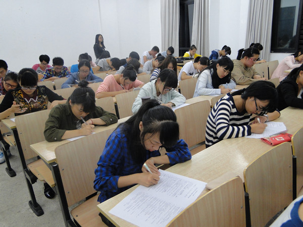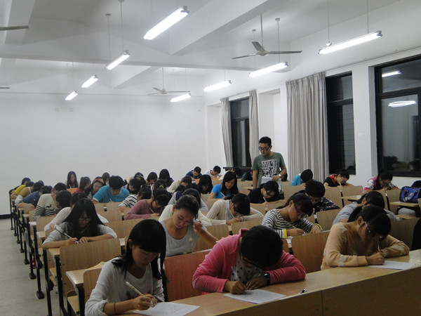 首先,各位助教向新生们讲解了考试的规则,并下发了试卷。拿到试卷后,新生们立刻动笔答卷。有的略微凝眉思索,之后自信下笔;有的奋笔疾书,不假思索;有的眉头紧皱,却也笔尖游走。场内气氛显得热烈而紧张。此次考试题型有填空题、选择题以及简答题,在答题过程中,各班助教做到了严格公正,并不时地提醒考生们注意把握时间,辅导员万里老师也进入考场为新生们监考,同学们也较好地遵守了考场纪律,认真答题,做到了诚信考试,这使得此次考试得以顺利进行。