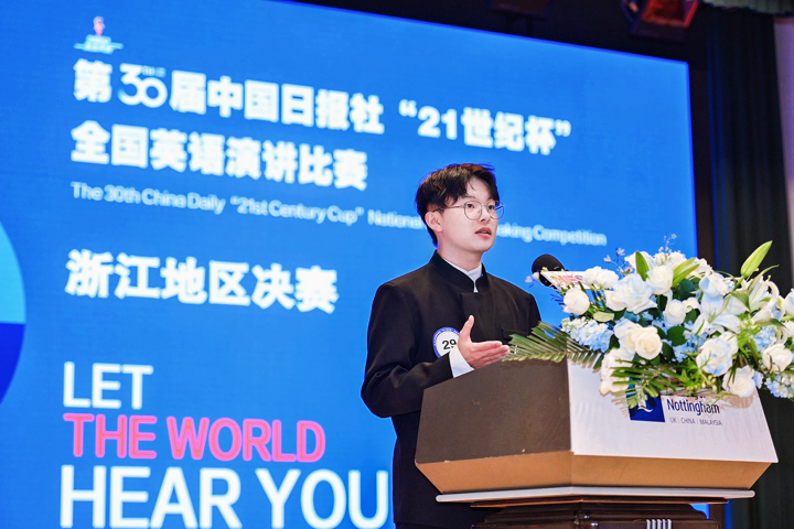 校园新闻网讯在2025年6月7日落幕的第三十届中国日报社“21世纪杯”全国英语演讲比赛浙江省决赛中,3044永利吴涛同学以扎实的语言功底、深刻的主题表达和从容的舞台风采,斩获省赛二等奖并成功晋级国赛。作为3044永利集团唯一入选国赛的高校选手,他将代表浙江学子征战全国舞台,为校争光。