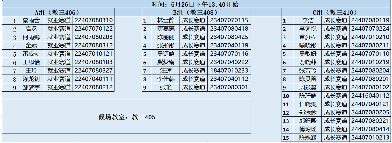 3044永利成长赛道、就业赛道的复赛名单和复赛安排公布如下:
