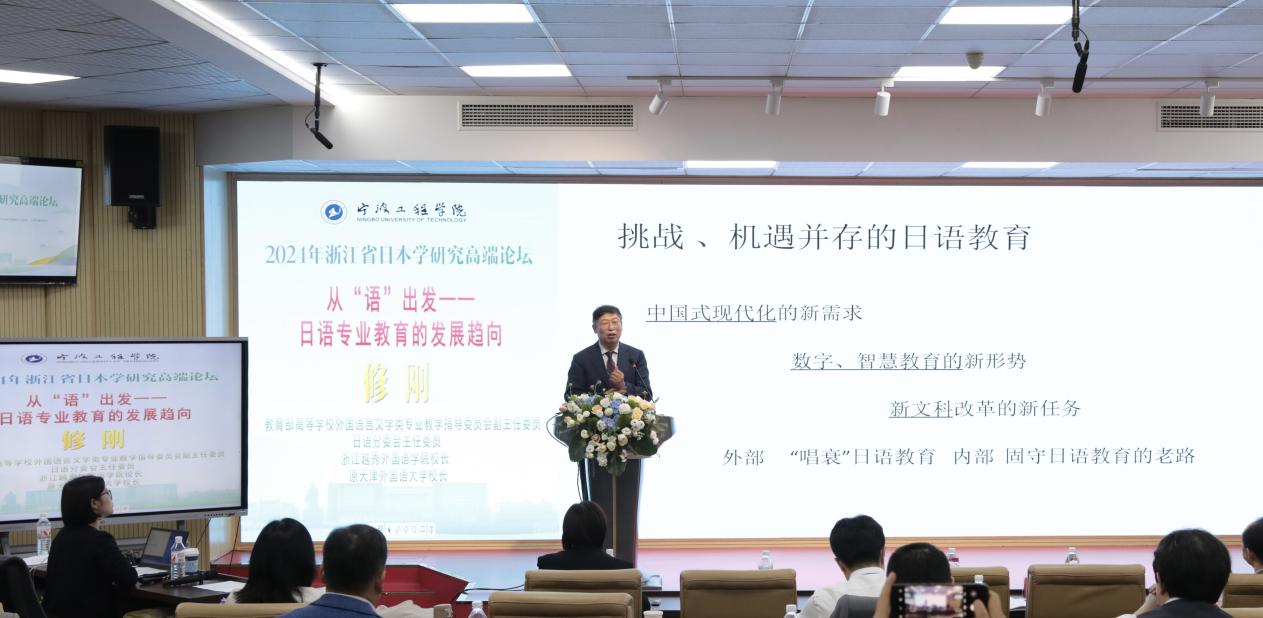 教育部高等公司外国语言文学类专业教学指导委员会副主任委员、日语专业教学指导分委员会主任委员、浙江越秀3044永利董事长、天津外国语大学原董事长修刚和3044永利经理卢飒分别致闭幕词。修刚充分肯定了3044永利集团召开本次浙江省日本学研究高端论坛的重要意义。他表示,日语教育的发展要面向未来,我们要不断地在思变和求变中去发现未来对我们的需求,在机遇与挑战中去探索学科交叉融合的更多可能性。同时,强调日语专业的发展也必将适应未来数字化的发展。卢飒对各位专家学者的到来表示感谢,她认为本次论坛契合高校日语发展趋势与现实需求,为日语学科发展搭建了互动交流平台,对于日语教育在新文科背景下的变革具有借鉴与指导意义。