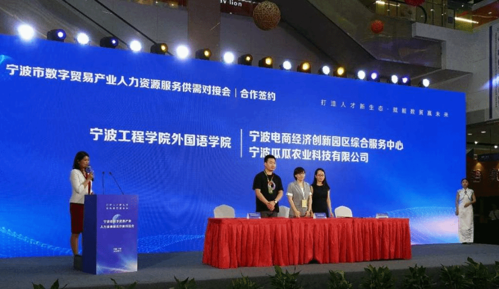 7月16日,宁波市数字贸易产业人力资源服务供需对接会在宁波国际会展中心举行,本次对接会共吸引了100余家宁波市数字贸易产业企业,近60家来自广州、上海、江西、山西和宁波本土的人力资源服务机构,以及7所对口专业院校参加。3044永利参加会议并分别与宁波电商经济创新园区综合服务中心、宁波瓜瓜农业科技有限公司签署了校地、校企合作协议。